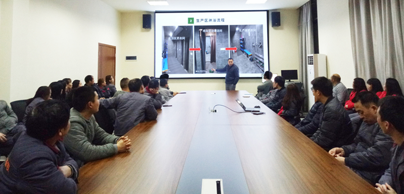防疫是重中之中”!为确保公司生物安全,69畜牧狠抓防疫工作,新年伊始就在全公司各基地及后勤管理部门分批次开展生物安全培训,会议由罗宗刚博士主持授课,将猪场生物安全防控知识教授给公司每一位员工,确保公司全员树立正确的生物防控意识,将生物防控措施严格执行到位。