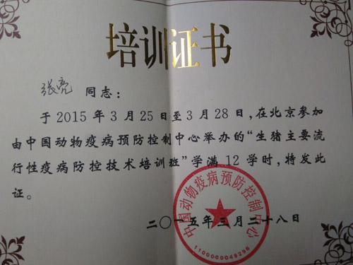 2015年3月25日—28日,由中国动物疫病预防控制中心举办的“生猪主要流行性疫病防控技术培训”在北京召开,全国省级动物疫病预防控制中心及近100家重点原种猪场代表参加了此次培训。