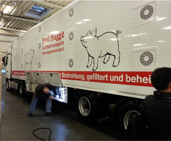 16日,考察团经德国边境,进入丹麦,考察了位于丹麦边境上的大型卡车自动清洗站。官方人员现场检查、清洗进入国境内的运猪车,采取严格消毒准入制度。这种严格的生物安全处理措施非常值得国内同行借鉴学习。