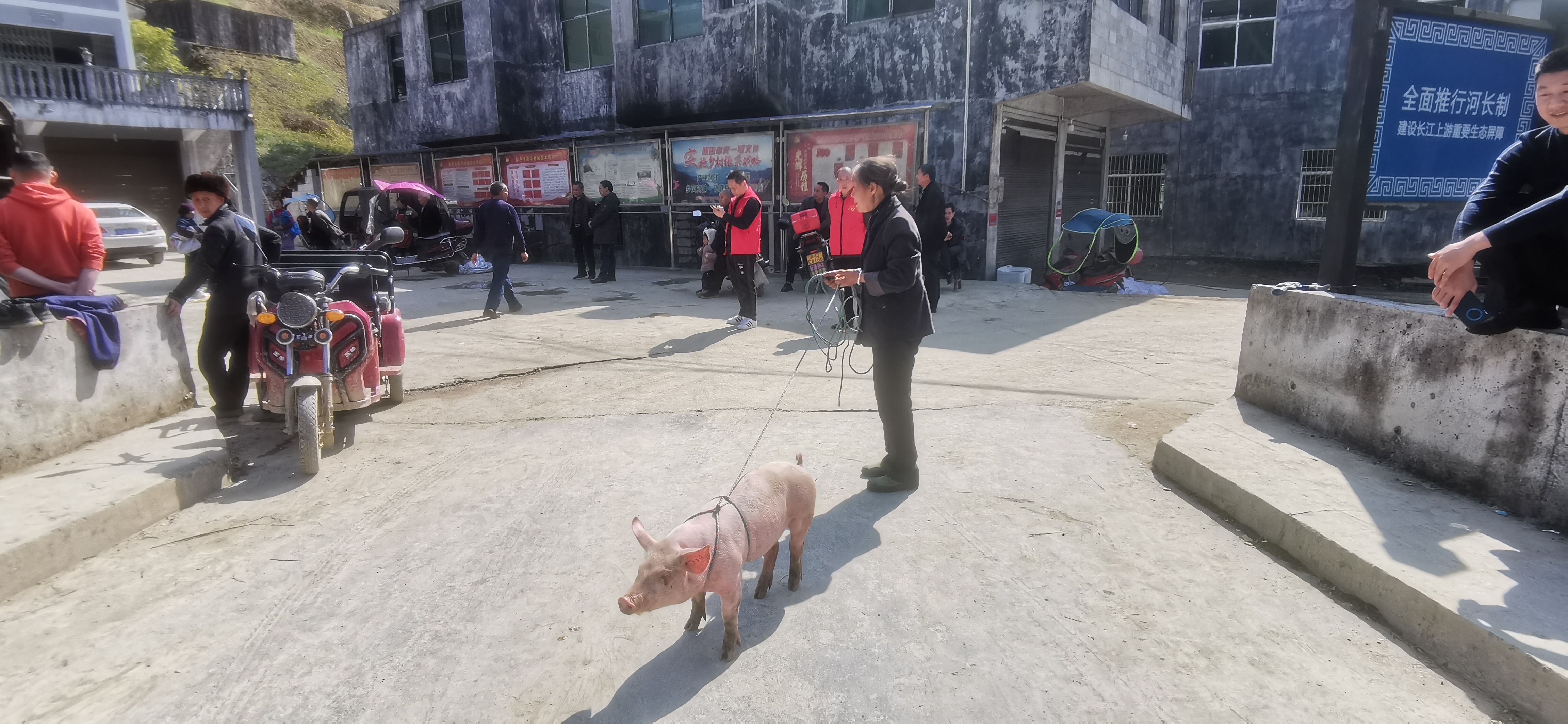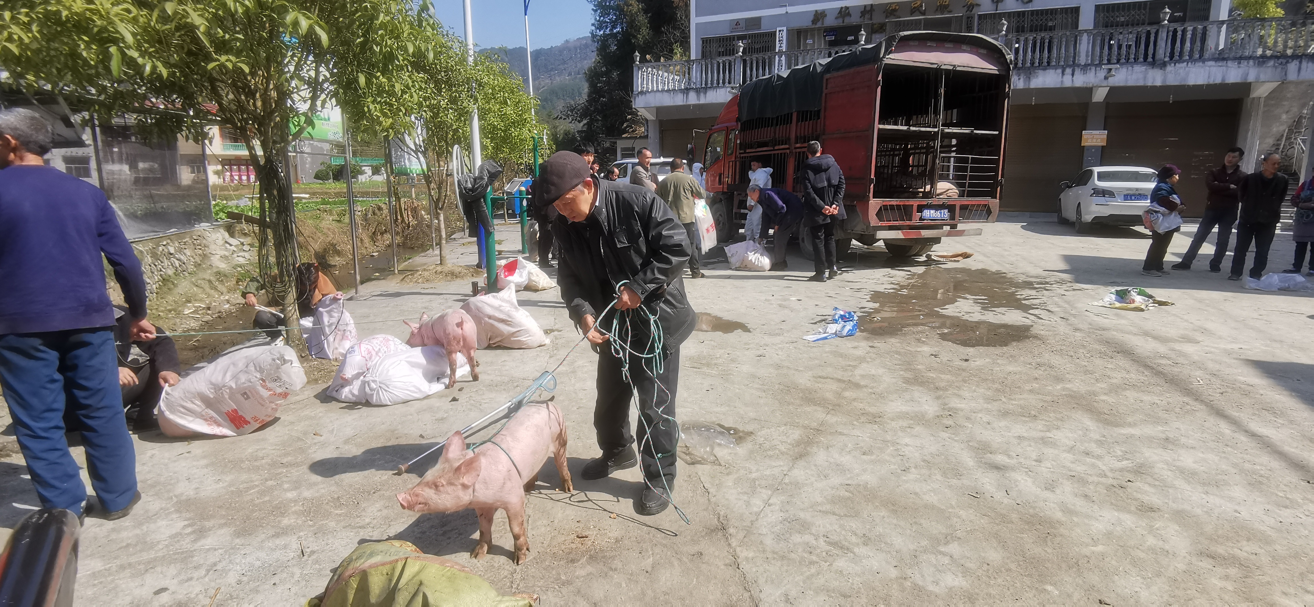3月8日,重庆69的送猪车辆来到新华乡,为新华乡新华村免费赠送仔猪101头,村民们领到猪只都十分高兴。