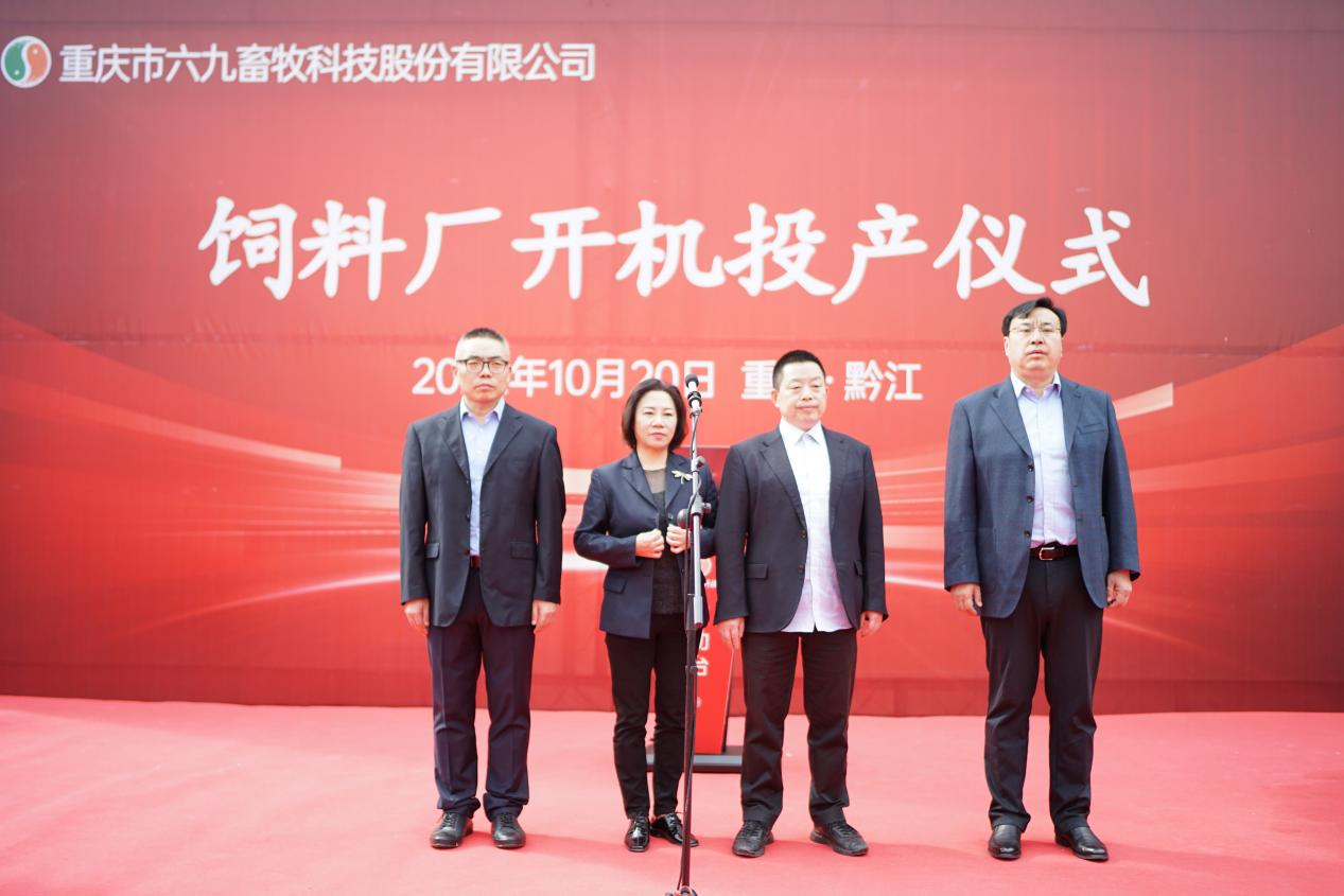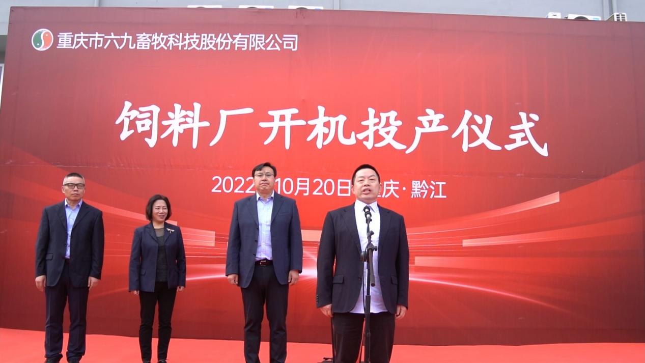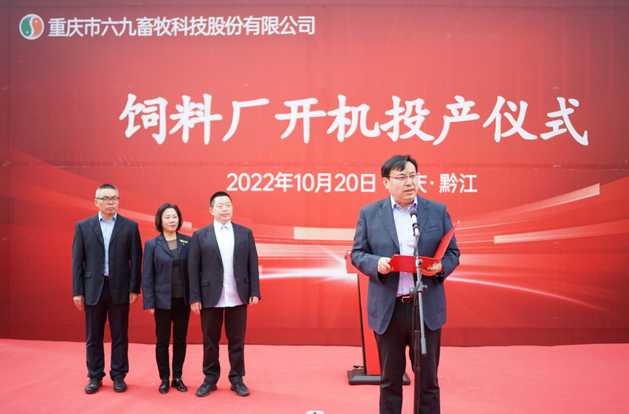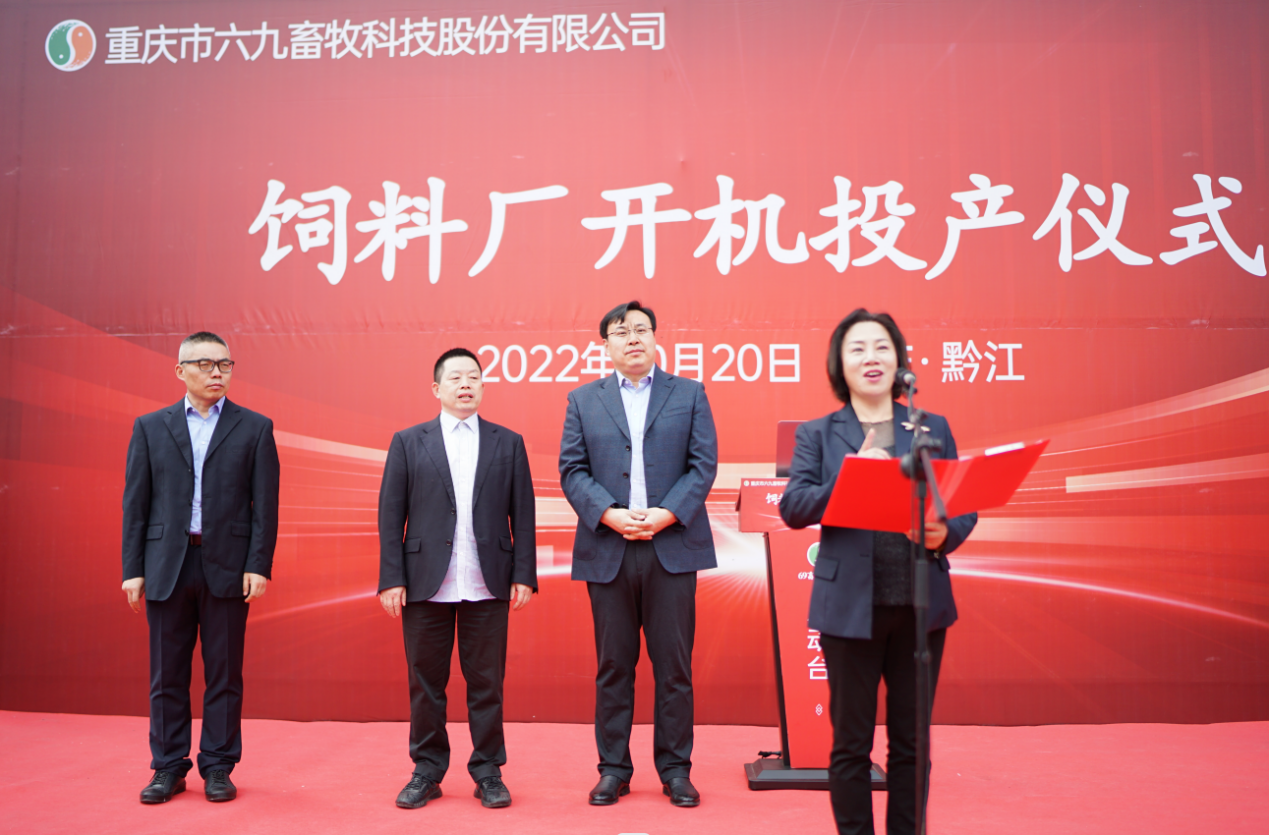 69畜牧董事长王藜发表讲话。董事长王藜感激感恩各方善缘对69的支持、帮助。董事长说今天69畜牧饲料厂的投产,离不开区委区政府的正确领导,离不开中牧集团的鼎力支持,更离不开69人坚韧不拔的奋斗。接下来,69畜牧将牢固树立成本意识、品质意识和营销意识,结合现代化科学技术产出安全优质的高品质饲料,为区域经济的协调发展和黔江的“四城建设”贡献力量。