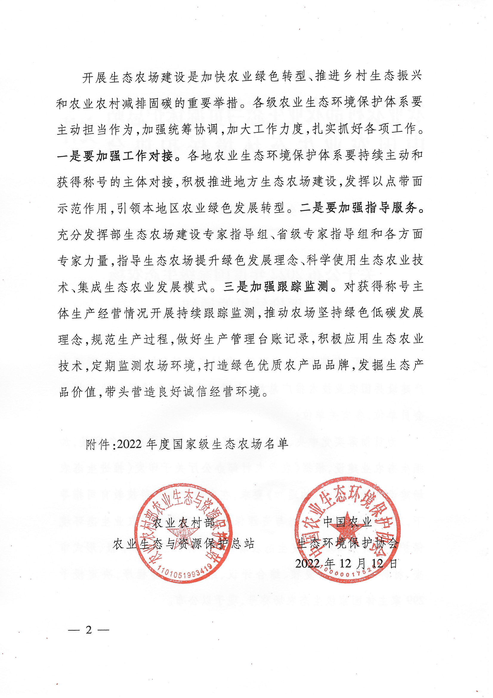 近日,农业农村部农业生态与资源保护总站、中国农业生态环境保护协会联合公布《关于公布2022年度国家级生态农场评价结果的通知》,69畜牧荣获国家级生态农场称号。