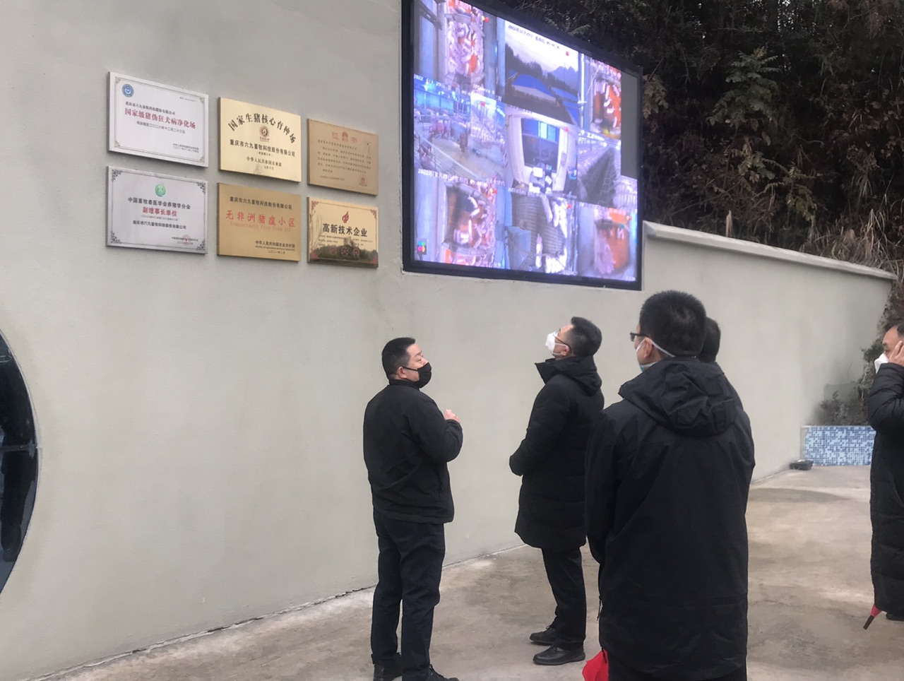 在兴隆湾种猪基地,罗云汇报了猪场建设总体情况及公司69猪芯片项目推进情况。王国权一行认真听取了公司今后发展规划的介绍,并通过实时监控查看了猪只生长情况。双方就“69猪芯片项目”相关事宜进行了深入交流。王总充分肯定重庆69致力打造“69猪芯片项目”,并指出重庆69作为黔江传统优势产业的国家级龙头企业,要努力打造具有黔江特色、富有竞争力的现代高科技农牧企业。他殷切希望重庆69一定要发挥好龙头企业作用,助力黔江区高质量推进乡村振兴,带动黔江老百姓真正实现增收致富。