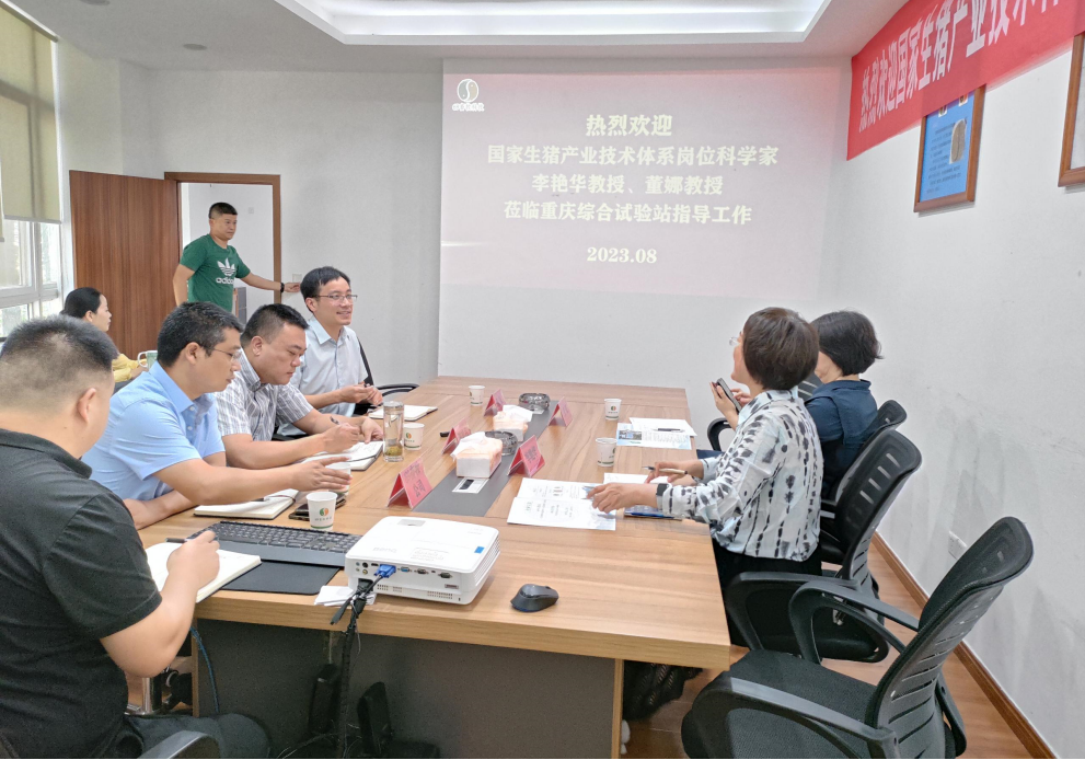 8月11-12日,国家生猪产业技术体系岗位科学家,东北农业大学李艳华教授、董娜教授莅临国家生猪产业技术体系重庆综合试验站指导交流。重庆综合试验站站长、重庆市六九畜牧科技股份有限公司总经理助理、育种总监蒲强主持会议。公司副总经理陈奕名、兽防总监黄长念、发展部经理徐涌、兴隆湾基地副场长谢义辉、数字部副经理肖俊等参加学习交流会。