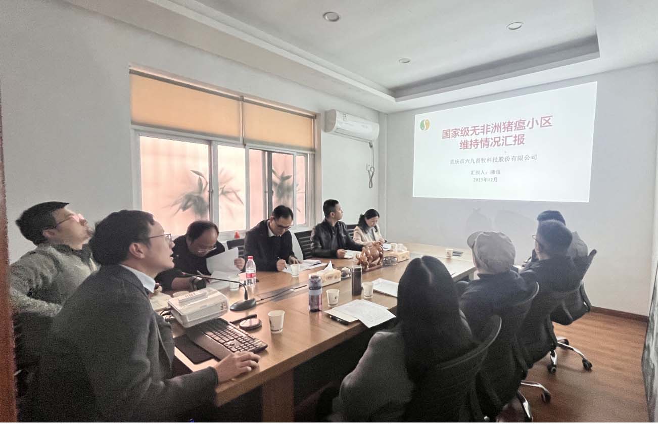 12月7日,重庆市农业农村委兽医处副处长付强、动物疫病预防控制中心副主任黄诚等专家一行到我司开展“国家级无非洲猪瘟小区”维持评估,评估工作组通过实地检查、座谈交流、查阅资料等形式对重庆市六九畜牧科技股份有限公司“国家级无非洲猪瘟小区”维持情况进行检查、指导并提出了下一步工作建议。黔江区畜牧中心副主任莫文斌,重庆69总经理助理蒲强等陪同参加评估活动。