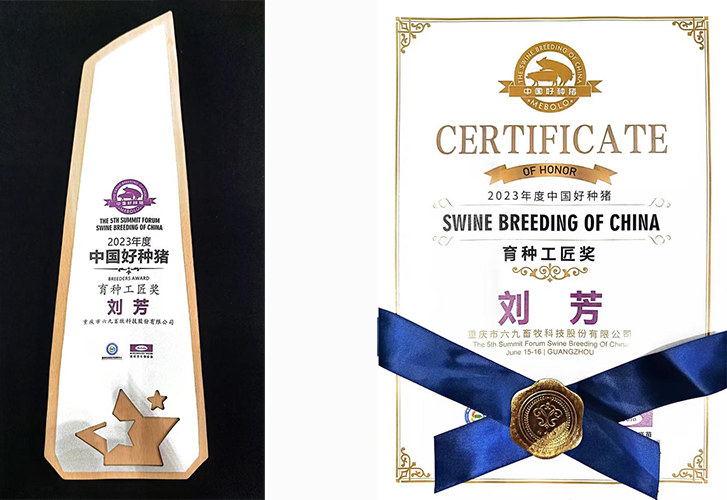 6月16日,在国家生猪技术创新中心主办的第五届中国好种猪健康育种创新大会上,我公司沙坝国家核心育种场副场长刘芳获评全国“育种工匠”荣誉称号。这是继公司副总经理蒲强2020年获评“育种工匠”之后第二位员工获此殊荣。