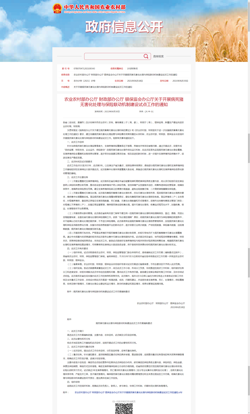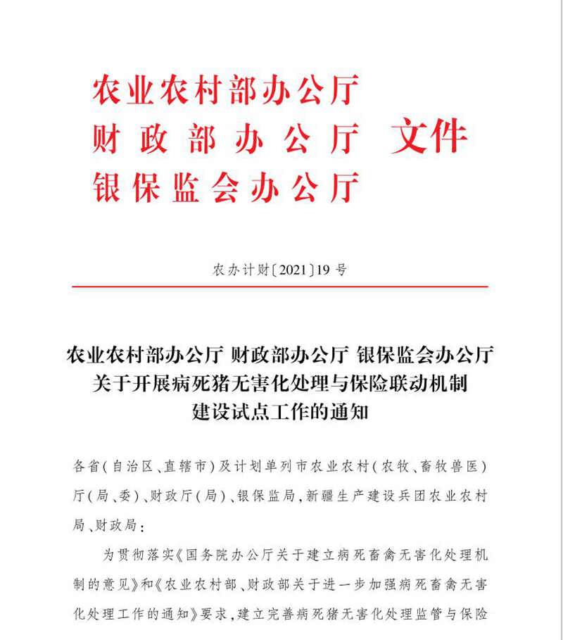 保险惠农政策双赢的长效机制,农业农村部、财政部、银保监会决定组织开展病死猪无害化处理